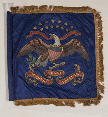 12th Cavalry (113th Regiment), National Standard. Composed of men from all over the Commonwealth, the 12th cavalry was nicknamed the "Curtin Hussars" and organized in late November 1861. When the regiment received this flag is unclear. The 12th cavalry mustered out of service on July 20, 1865.